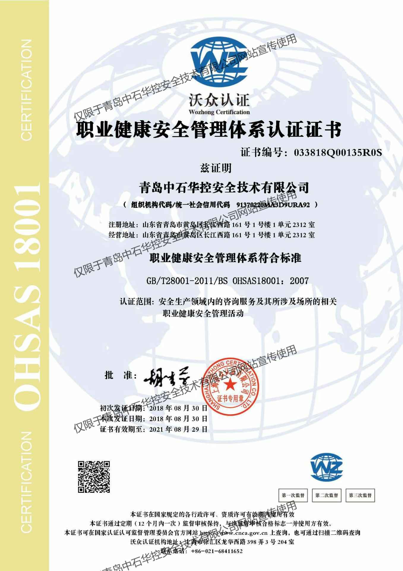 2018年体系证书